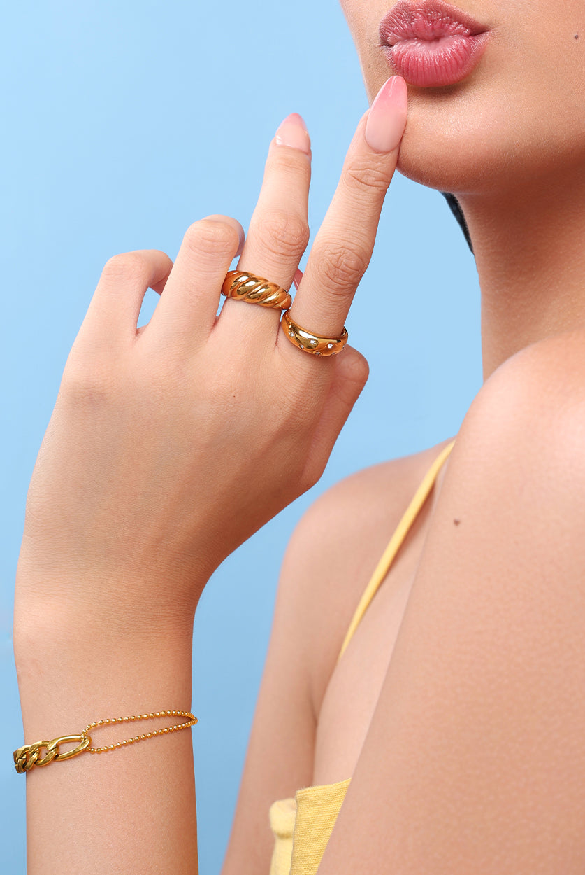 Made with 18k PVD plating and stainless steel so your pieces stay shiny and tarnish-free with minimal care.